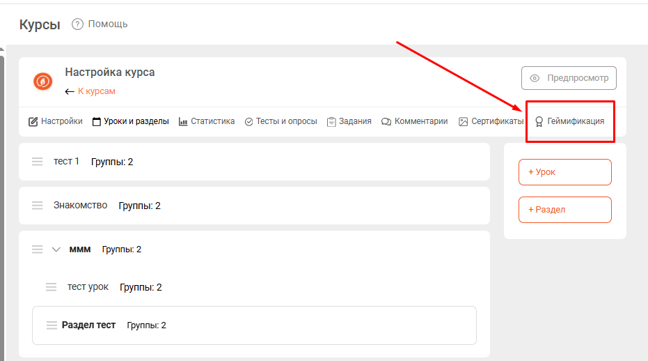 Перейдите в настройки Геймификации: